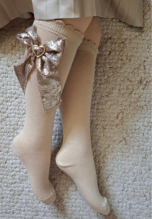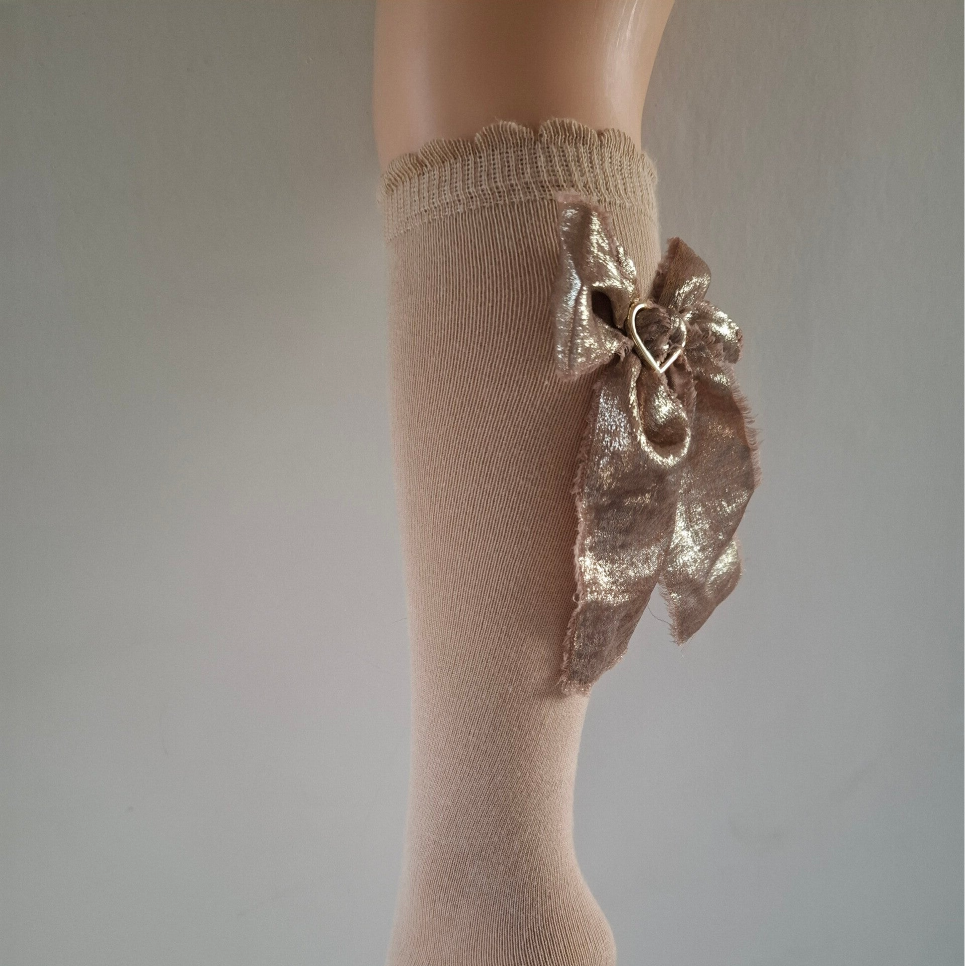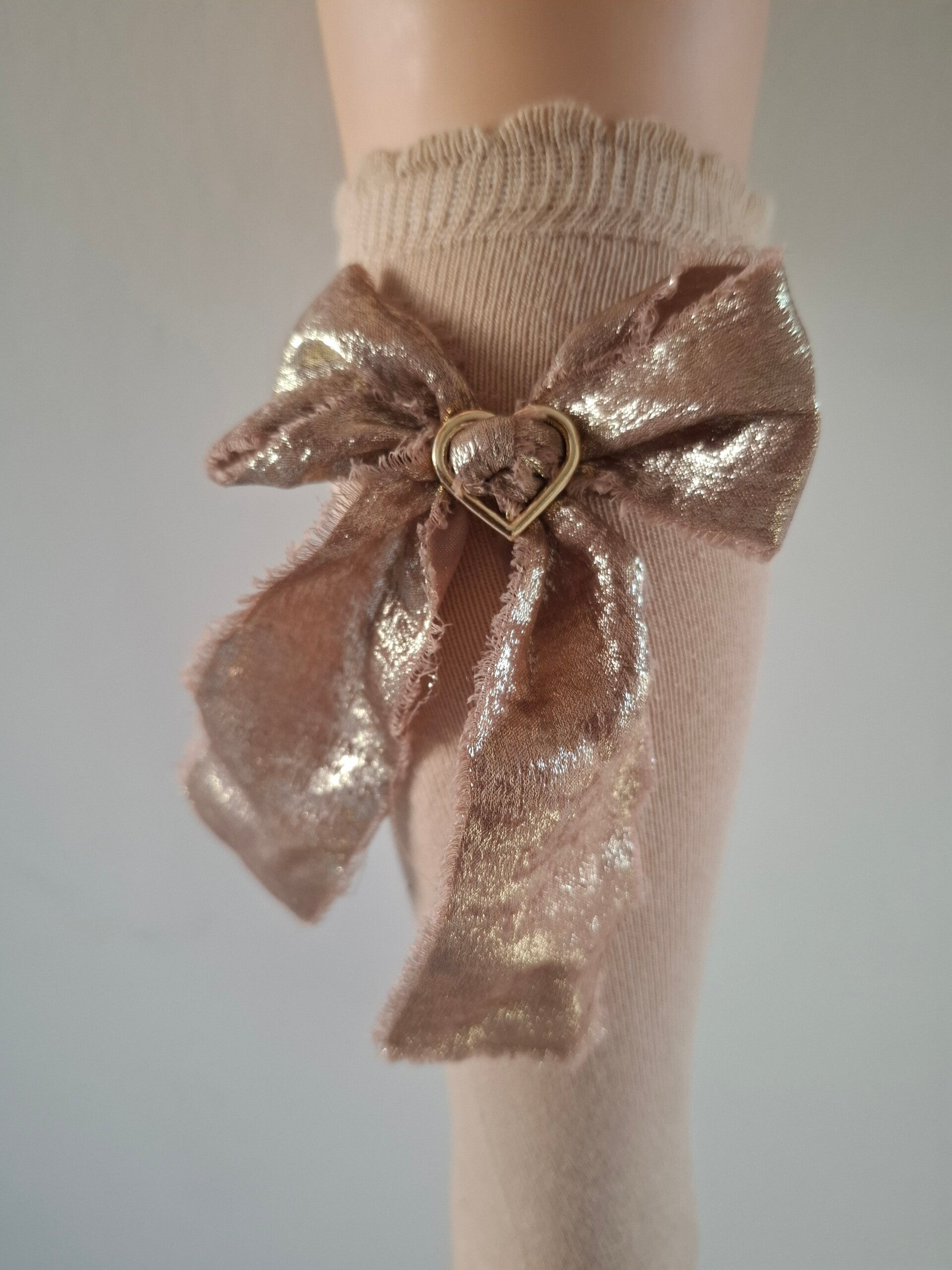 Deze strik kan ook op een witte of offwhite kniekous gedaan worden. Met een gouden hartjesgesp